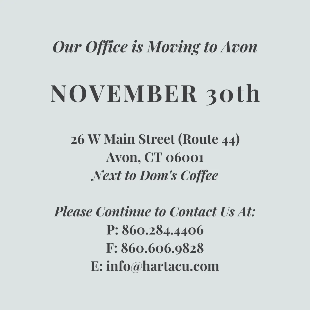 Office: 26 W Main Street (Route 44), Avon, CT 06001